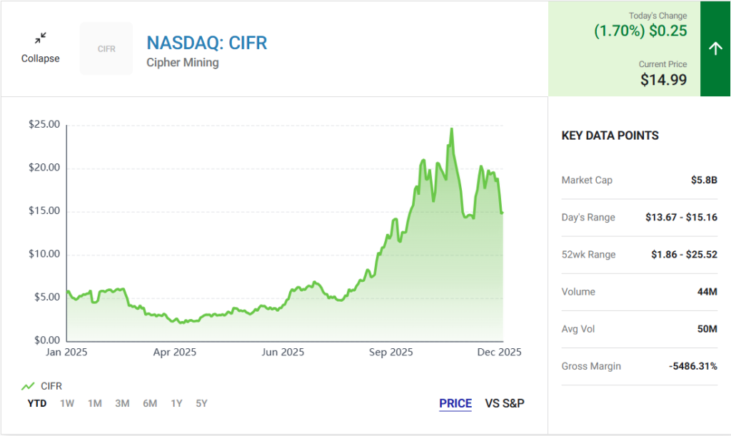 Cipher Mining (CIFR) is quickly establishing itself as a leader in the artificial intelligence (AI) infrastructure sector. Originally focused on Bitcoin mining, the company has pivoted to providing AI computing infrastructure, positioning itself at the intersection of two booming industries: crypto and AI.