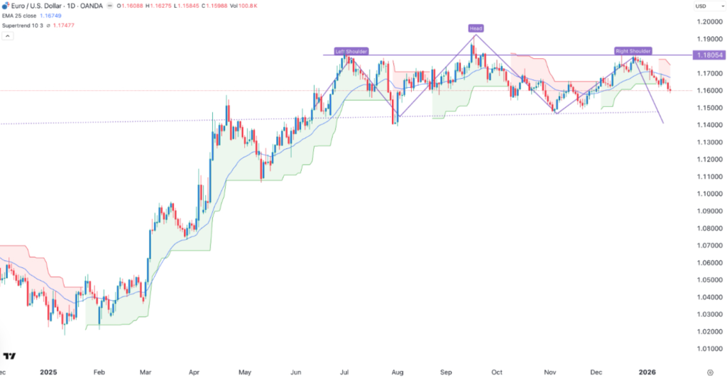 Such rhetoric revived concerns over a renewed trade conflict, prompting investors to seek the relative safety of the US dollar. Historically, tariff threats and trade uncertainty have weighed on the euro, particularly when they risk disrupting export-driven European economies. Even if these measures are later challenged or diluted, the headline risk alone has proven sufficient to pressure the common currency.