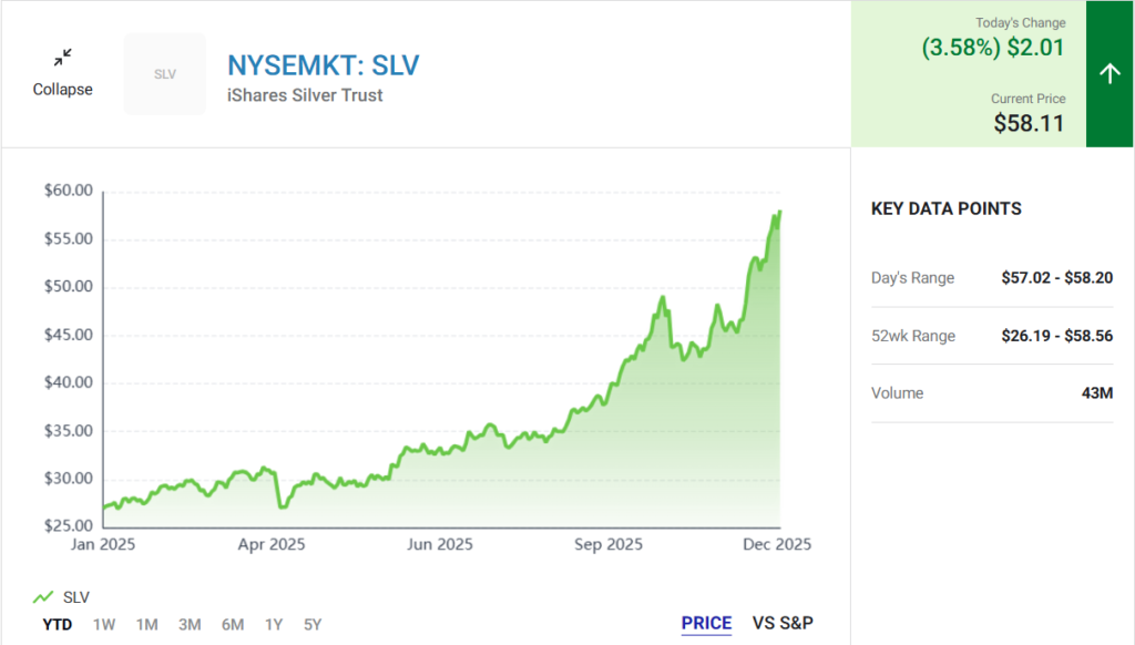 With a low expense ratio of 0.5%, it’s one of the most cost-efficient ways to invest in silver. In 2025, the ETF surged by over 110%, closely tracking silver’s price movements. As silver prices rise, the value of shares in the iShares Silver Trust increases accordingly.