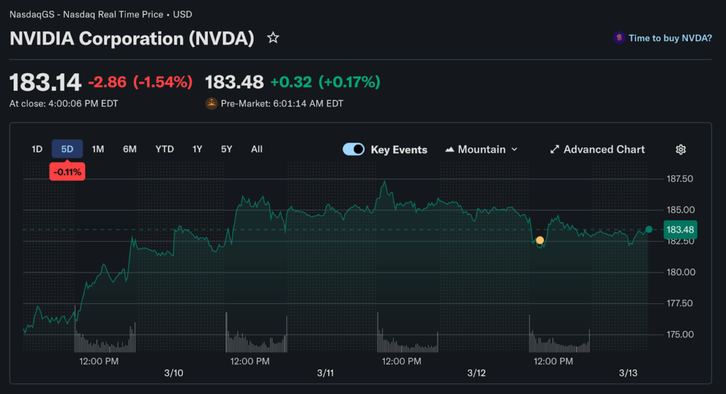 NVIDIA announced a $2 billion investment in Nebius, a cloud computing provider, on Wednesday. NVIDIA stock edged up 0.7% to 186, just clearing its own 50-day line. The Nebius deal fits a pattern NVIDIA has developed of taking stakes in companies that subsequently purchase NVIDIA hardware, creating a circular reinforcement of both its revenue pipeline and its strategic relationships in the AI infrastructure space.